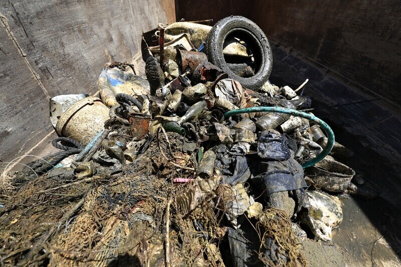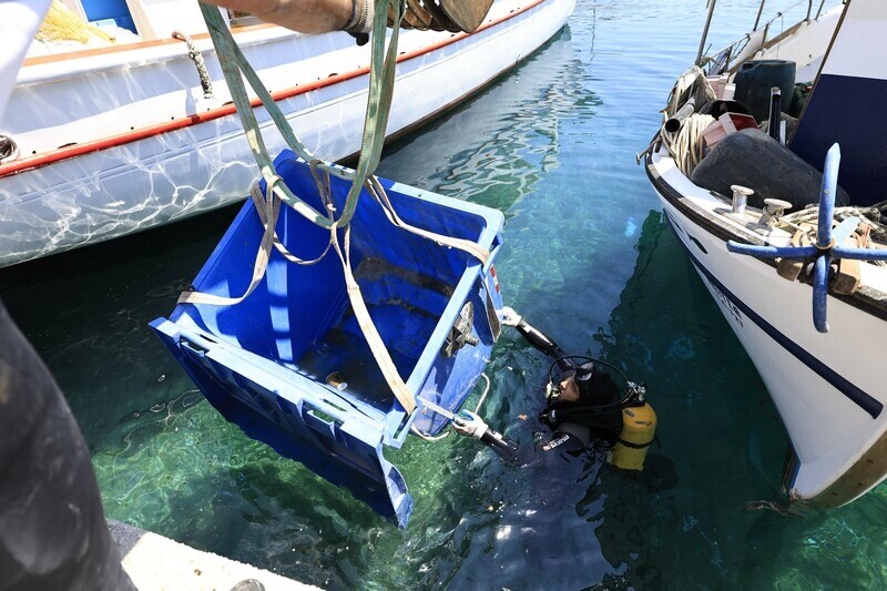 Our first major action took place in Kythnos, where —with specialized divers, the social, non-profit enterprise Enaleia, and heavy equipment— nearly 4 tons of waste were collected, filling an entire container. Of the overall debris collected, 36% was plastic.